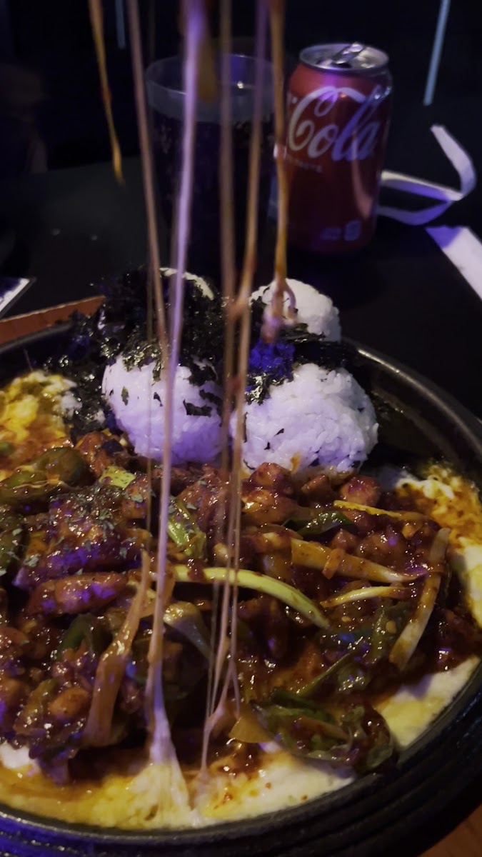 If you're looking for a lively Korean pub experience in LA’s Koreatown, Honey Night is a must-visit. This spot perfectly blends authentic Korean flavors with a fun, casual atmosphere, making it great for a night out with friends. The menu offers a solid selection of classic Korean dishes, and everything we tried was packed with flavor. The spicy cheese chicken was a standout—perfectly tender chicken coated in a rich, spicy sauce, balanced out by the melted cheese on top. The pork belly was also excellent, grilled to perfection with just the right amount of crispiness and fat for that signature samgyeopsal bite. Another highlight was the chicken and rice cake, a comforting dish that combined chewy tteok with savory, well-seasoned chicken. I really love this place!